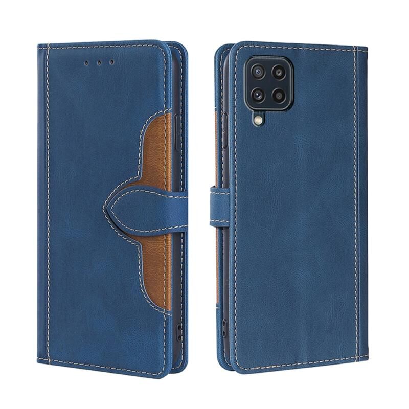 Για Samsung Galaxy M32 Ινδία έκδοση δέρμα αίσθηση αχυρένιο καπέλο μαγνητική πόρπη δερμάτινη θήκη τηλεφώνου (Μπλε)