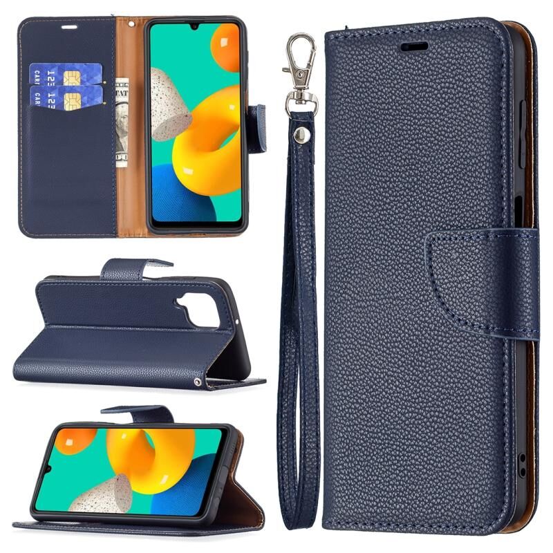 Για Samsung Galaxy M32 Litchi Υφή καθαρό χρώμα οριζόντια Flip δερμάτινη θήκη με θήκη & υποδοχές για κάρτες & πορτοφόλι & κορδόνι (Σκούρο μπλε)