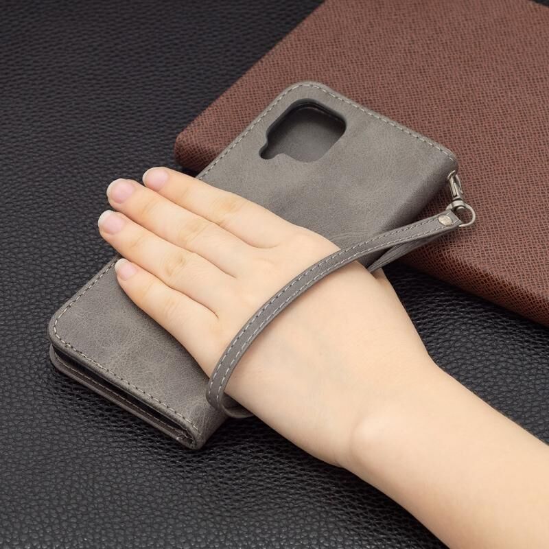 Για Samsung Galaxy M32 Ρετρό Lambskin υφή καθαρό χρώμα οριζόντια Flip PU δέρμα υπόθεση με θήκη & υποδοχές για κάρτες & πορτοφόλι & κορδόνι (Γκρι)