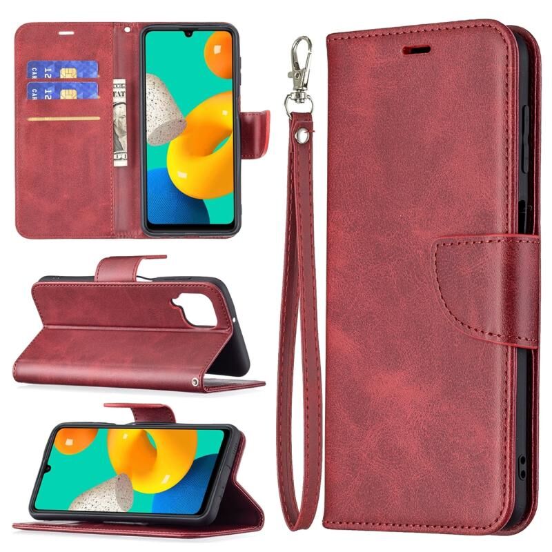 Για Samsung Galaxy M32 Ρετρό Lambskin υφή καθαρό χρώμα οριζόντια Flip PU δέρμα υπόθεση με θήκη & υποδοχές για κάρτες & πορτοφόλι & κορδόνι (κόκκινο)