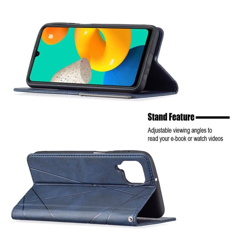 Για Samsung Galaxy M32 Rhombus υφή οριζόντια Flip μαγνητική δερμάτινη θήκη με υποδοχή & υποδοχές για κάρτες (μπλε)