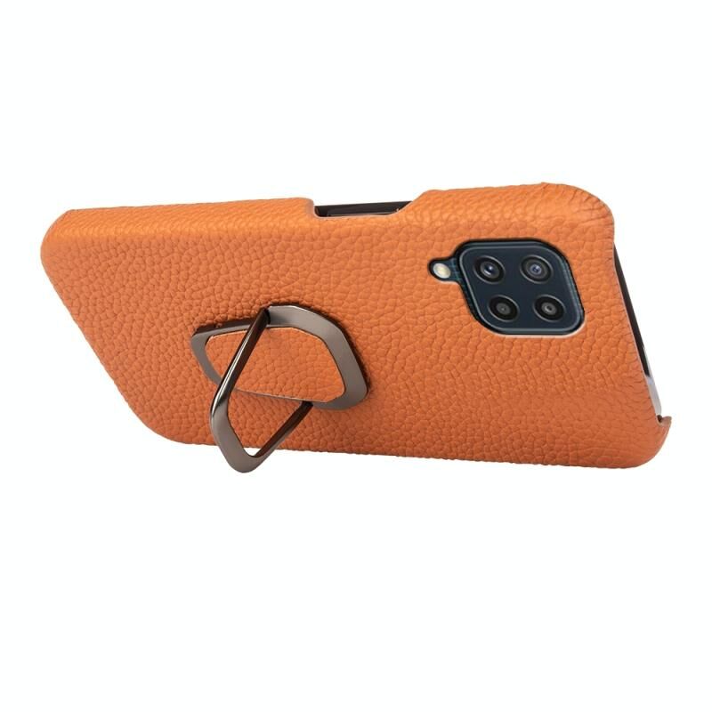 Για Samsung Galaxy M32 Δαχτυλίδι κάτοχος Litchi Υφή γνήσιο δέρμα τηλέφωνο υπόθεση (Καφέ)