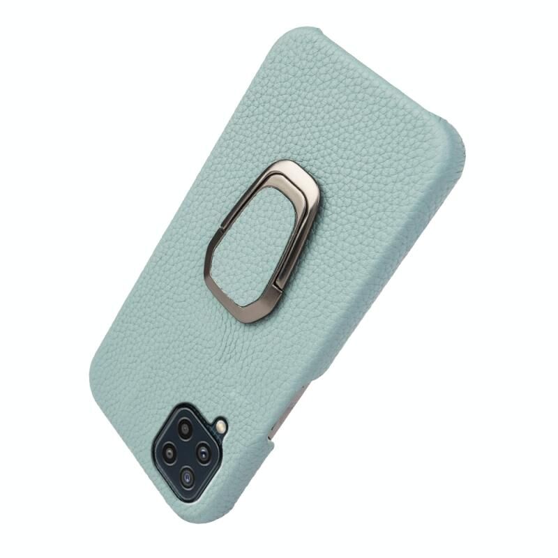Για Samsung Galaxy M32 Δαχτυλίδι κάτοχος Litchi Υφή γνήσιο δέρμα τηλέφωνο υπόθεση (Cyan)