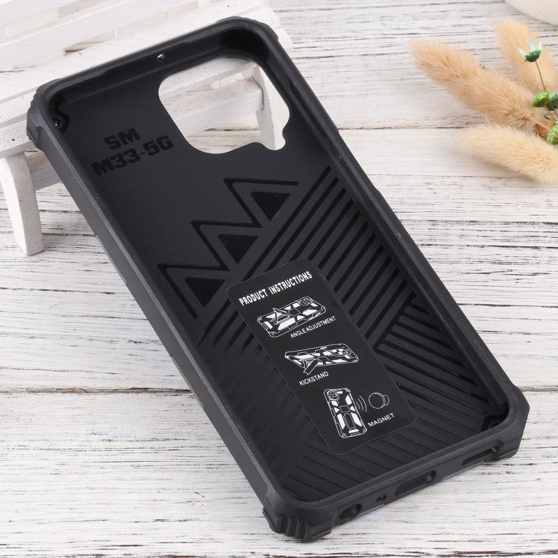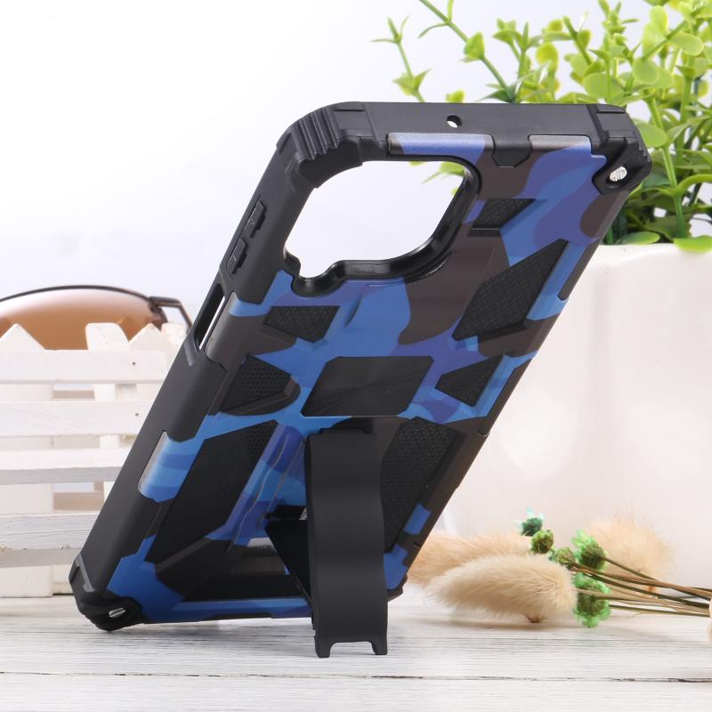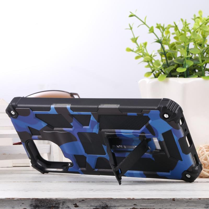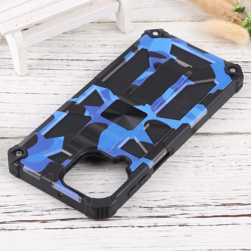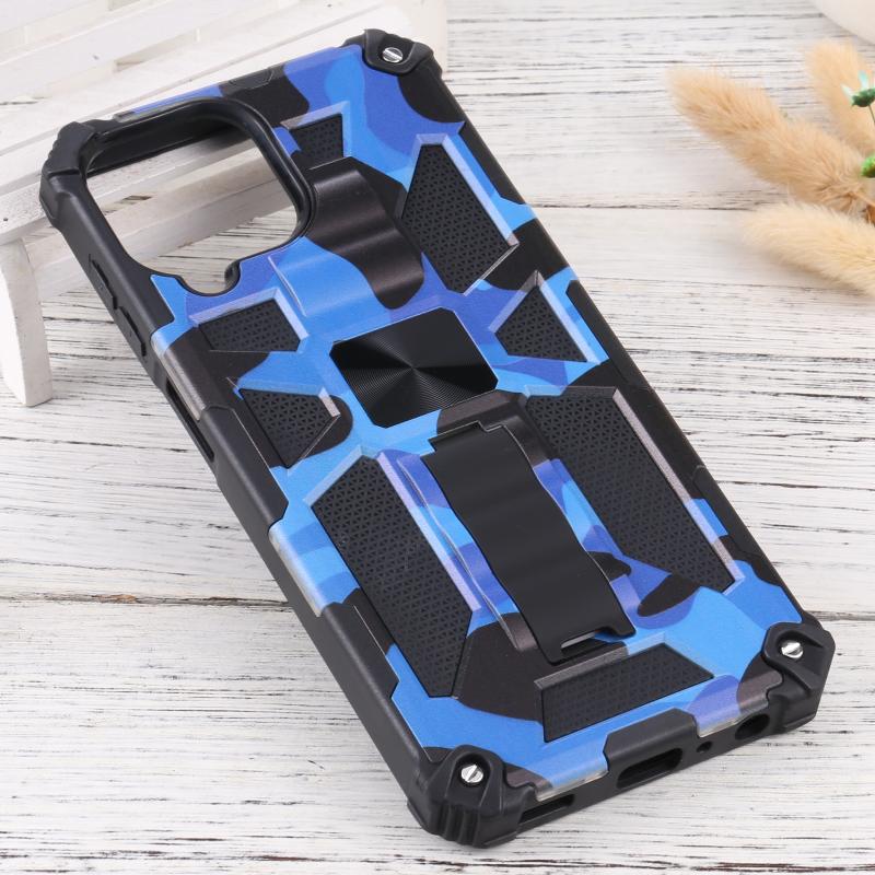 For Samsung Galaxy M33 5G Camouflage Armor Kickstand TPU + PC Magnetic Phone Case(Dark Blue)