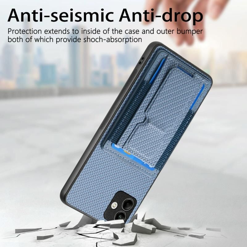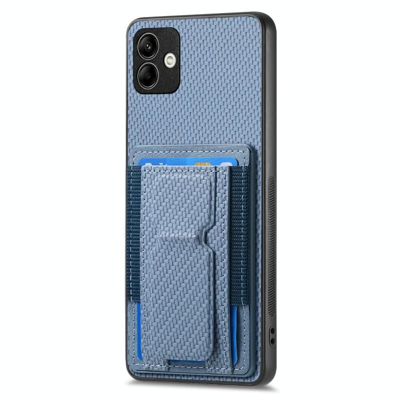 For Samsung Galaxy M33 5G Carbon Fiber Fold Stand Elastic Card Bag Phone Case(Blue)