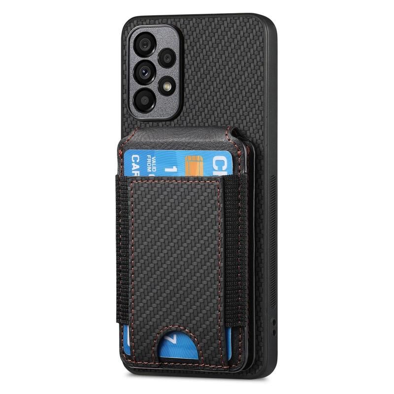 Για Samsung Galaxy M33 5G άνθρακα Fiber κάθετη Flip Wallet Stand υπόθεση τηλεφώνου (Μαύρο)