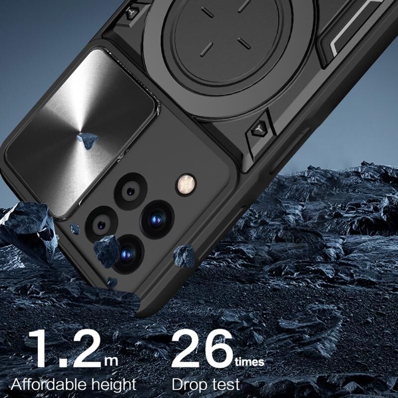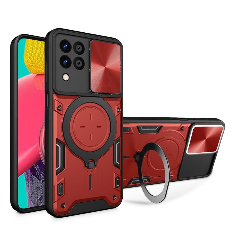 Θήκη κινητού τηλεφώνου για Samsung Galaxy M33 5G με υφή CD, συρόμενο προστατευτικό κάμερας και μαγνητική βάση (Μαύρο)