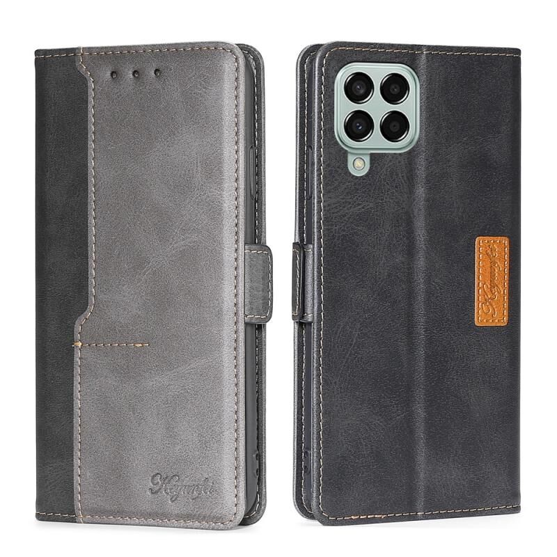 Για Samsung Galaxy M33 5G αντίθεση χρώμα πλευρά πόρπη δερμάτινη θήκη τηλεφώνου (Μαύρο + Γκρι)