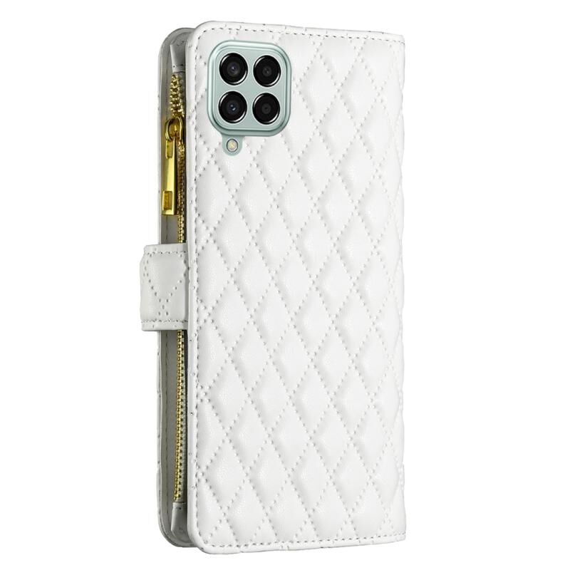 Θήκη τηλεφώνου Samsung Galaxy M33 5G, Δερμάτινη θήκη τύπου πορτοφολιού με φερμουάρ και διαμαντένιο πλέγμα (Λευκό)