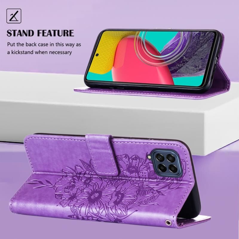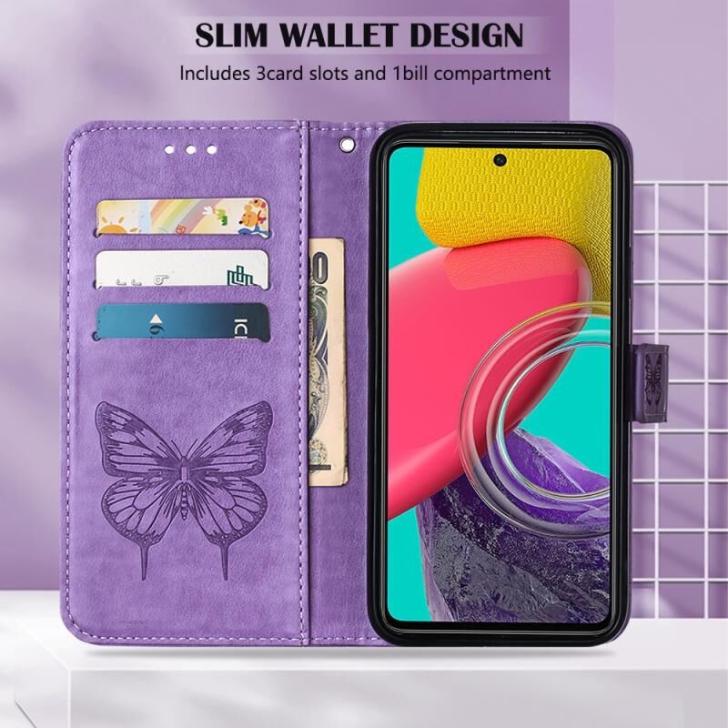 For Samsung Galaxy M33 5G Embossed Butterfly Leather Phone Case(Μωβ)
