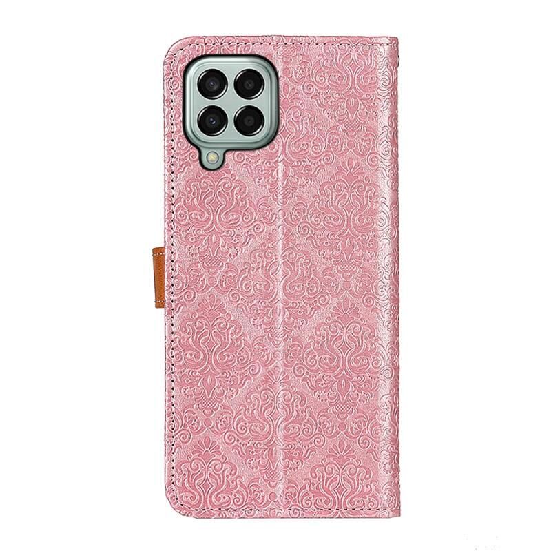 Για Samsung Galaxy M33 5G Ευρωπαϊκή Floral ανάγλυφη δερμάτινη θήκη τηλεφώνου (ροζ)