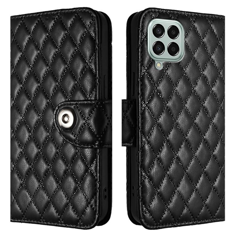 Θήκη τηλεφώνου Samsung Galaxy M33 5G Global με δερμάτινη υφή ρόμβου και λουρί (Μαύρο)