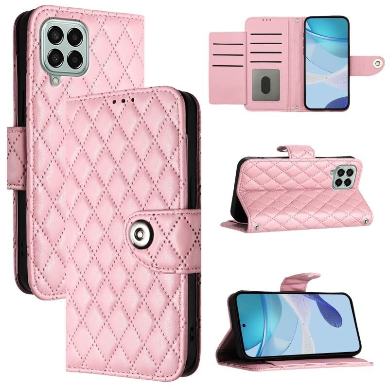 Θήκη τηλεφώνου Samsung Galaxy M33 5G Global με δερμάτινη υφή ρόμβου και λουρί (ρόζ)