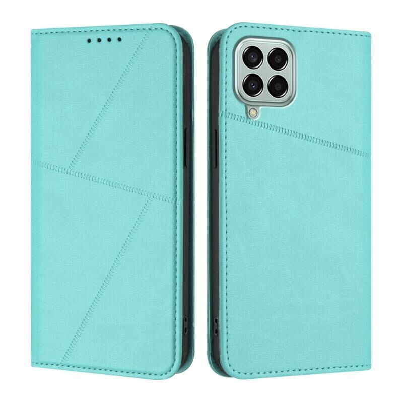 Θήκη τηλεφώνου Samsung Galaxy M33 5G Global με ισχυρό μαγνητισμό, ματ, δερμάτινη, αναδιπλούμενη (Ανοιχτό μπλε)