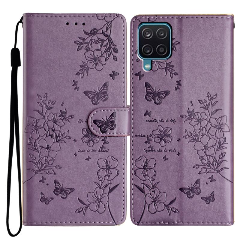 For Samsung Galaxy M33 Butterflies and Flowers Leather Phone Case(Purple)