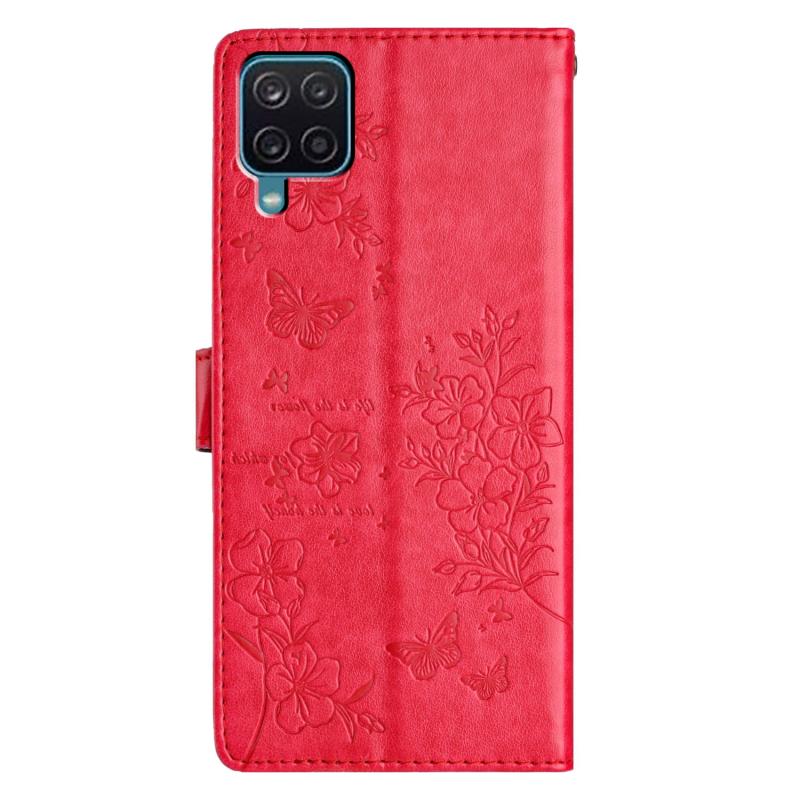 For Samsung Galaxy M33 Butterflies and Flowers Leather Phone Case(Red)
