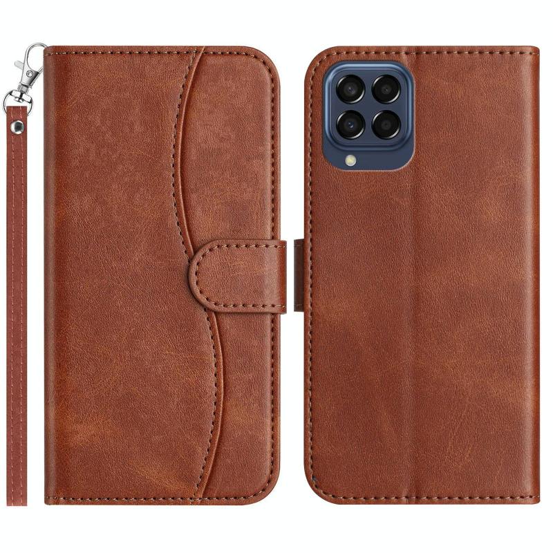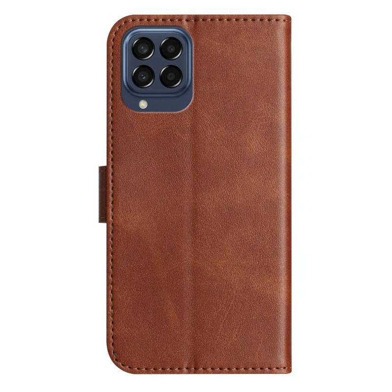 For Samsung Galaxy M33 Dual-Folded S-shape Leather Phone Case(Coffee)