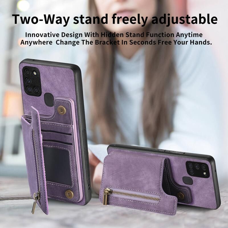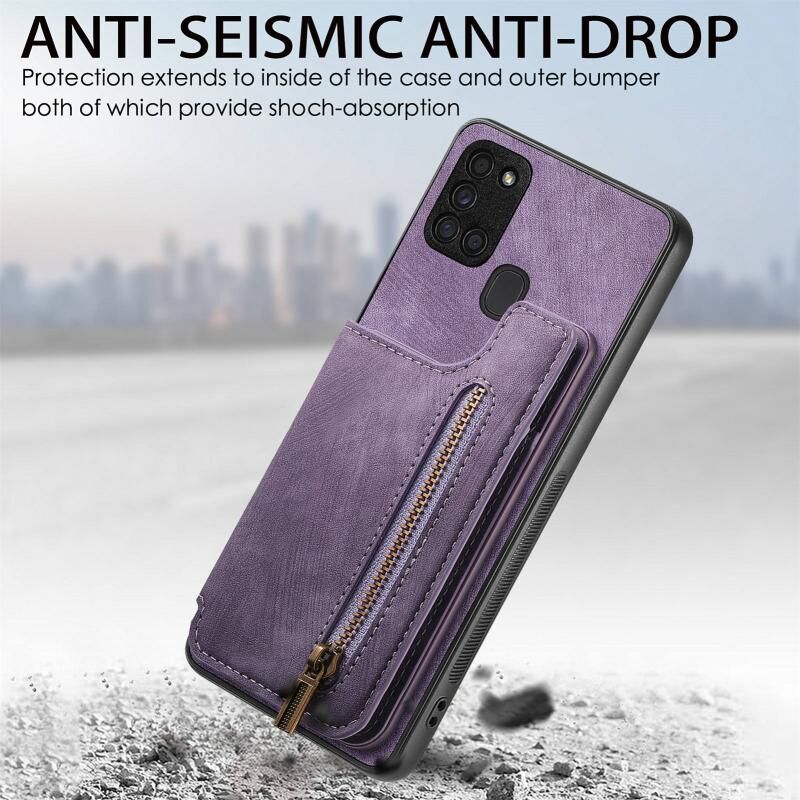 Για Samsung Galaxy M33 Ρετρό δέρμα φερμουάρ πορτοφόλι πίσω θήκη τηλεφώνου (μωβ)