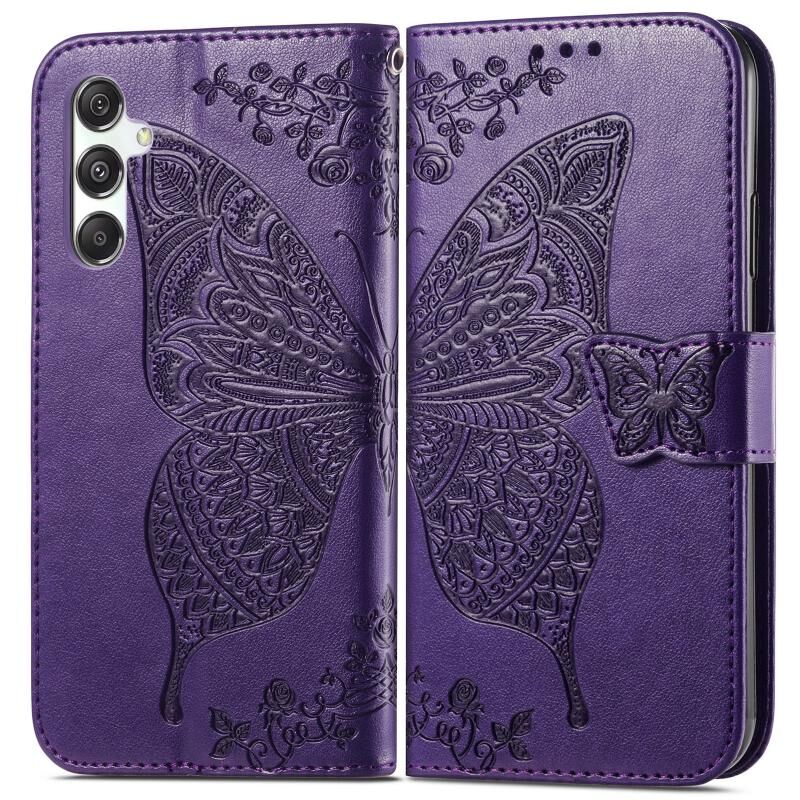 Για Samsung Galaxy M34 5G πεταλούδα αγάπη λουλούδι ανάγλυφο δερμάτινη θήκη τηλεφώνου (σκούρο μωβ)