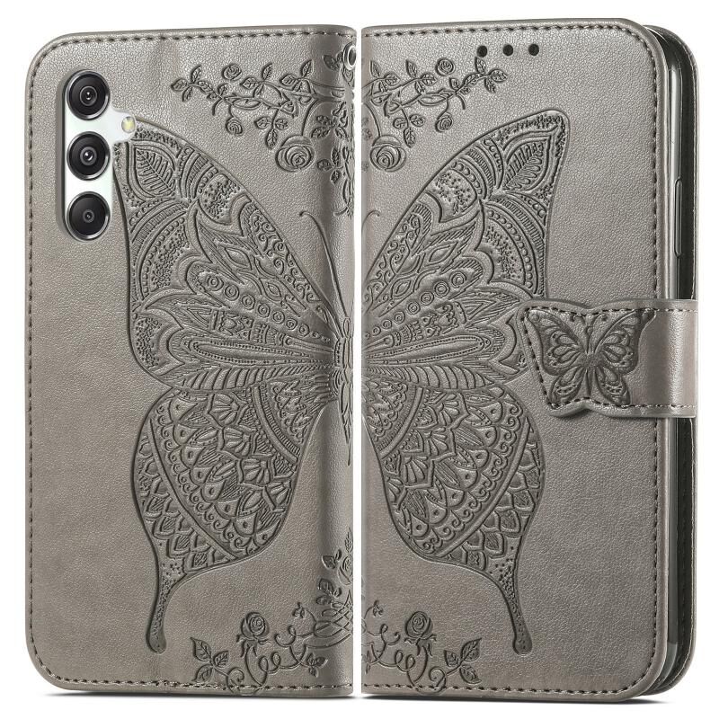 Για Samsung Galaxy M34 5G πεταλούδα αγάπη λουλούδι ανάγλυφο δερμάτινη θήκη τηλεφώνου (γκρι)