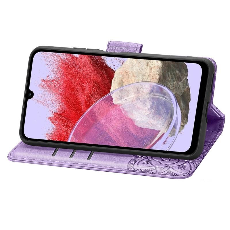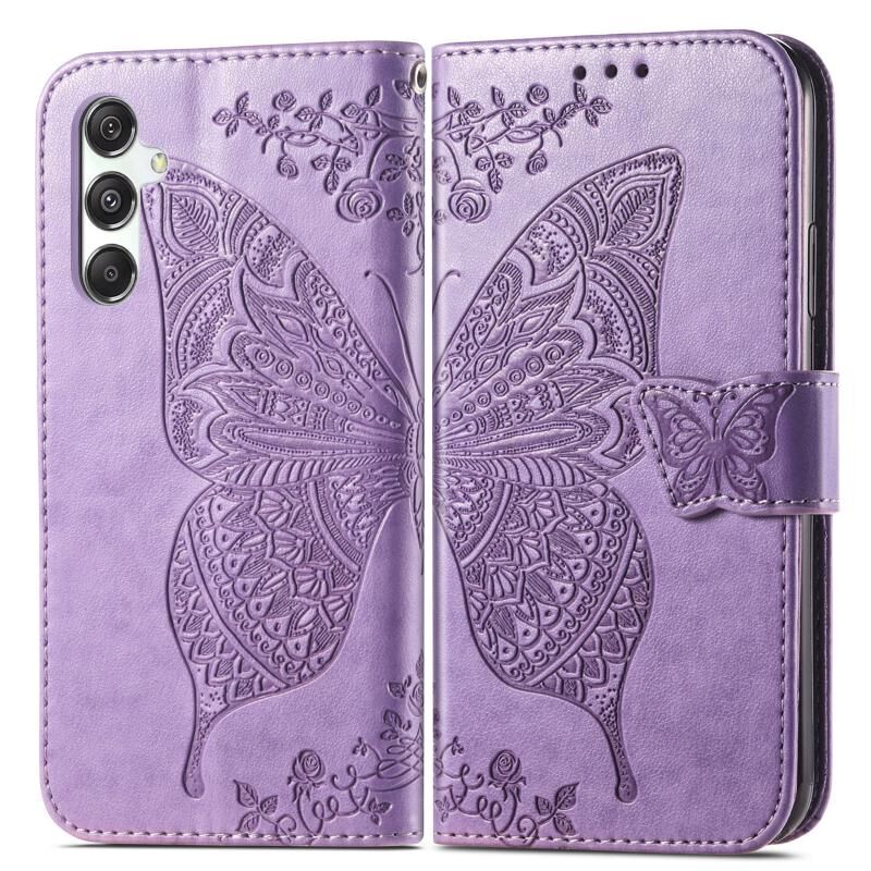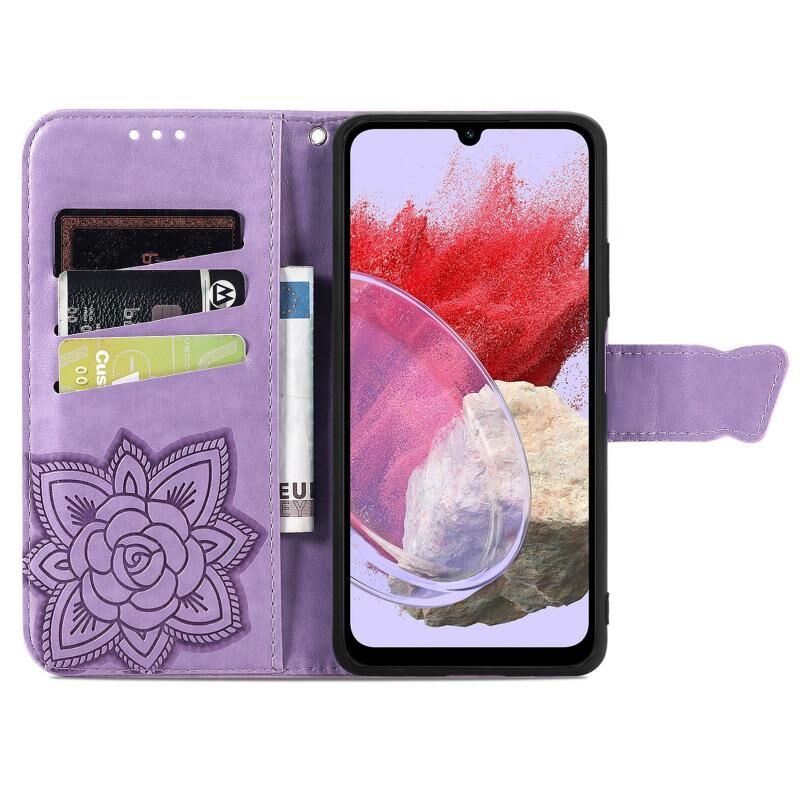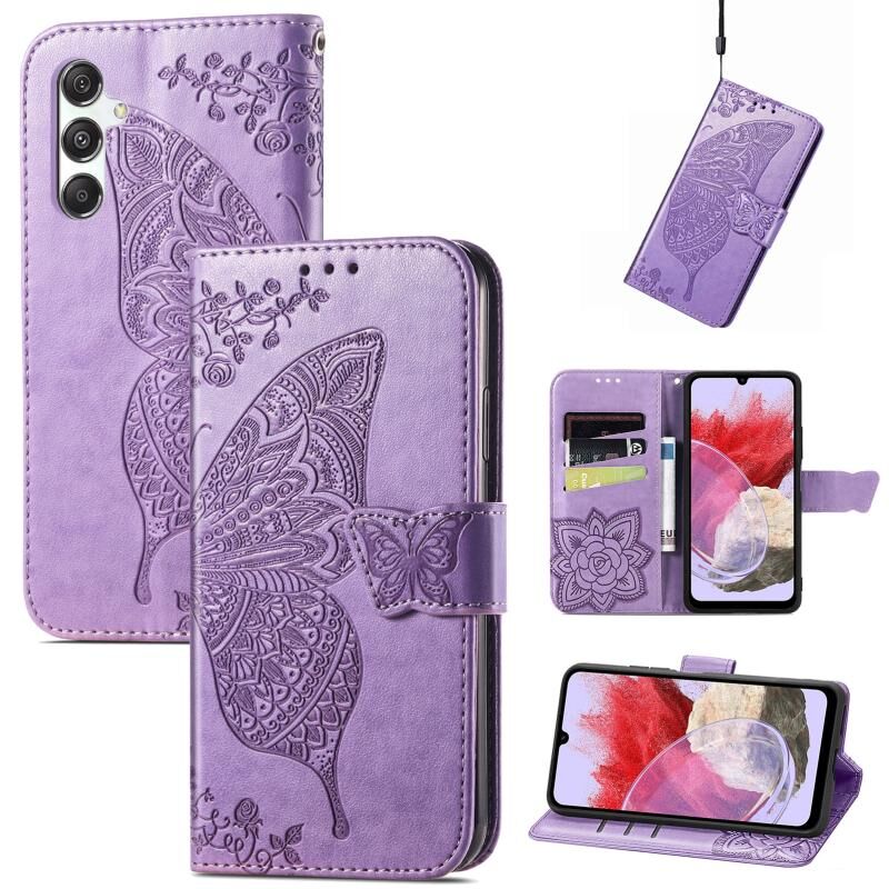 Για Samsung Galaxy M34 5G πεταλούδα αγάπη λουλούδι ανάγλυφο δερμάτινη θήκη τηλεφώνου (Light Purple)