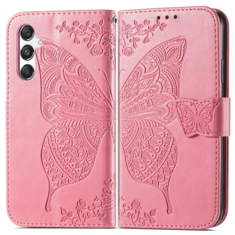 Για Samsung Galaxy M34 5G πεταλούδα αγάπη λουλούδι ανάγλυφο δερμάτινη θήκη τηλεφώνου (ροζ)