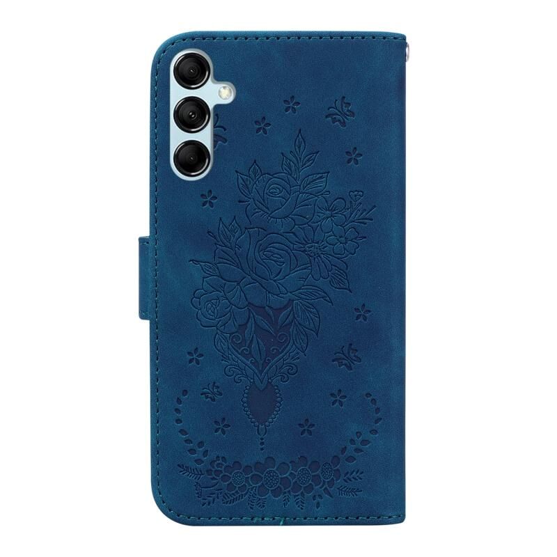 Για Samsung Galaxy M34 5G/F34 5G πεταλούδα Rose ανάγλυφο δέρμα υπόθεση τηλεφώνου (Μπλε)