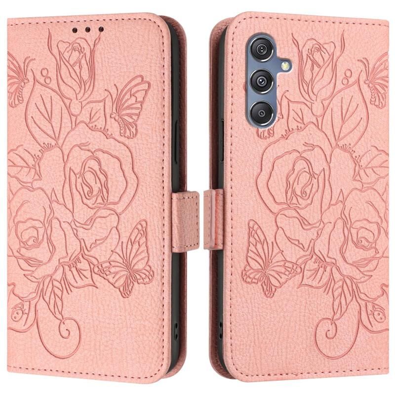 Θήκη τηλεφώνου δερμάτινη με ανάγλυφο σχέδιο τριαντάφυλλου και προστασία RFID κατά της κλοπής για Samsung Galaxy M34 5G / F34 5G (Πράσινη)