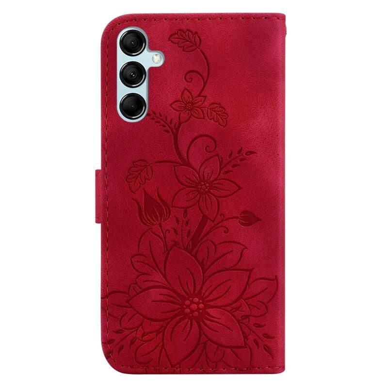 Θήκη τηλεφώνου από δέρμα με ανάγλυφο λουλουδιού Lily για Samsung Galaxy M34 5G/F34 5G (Μωβ)