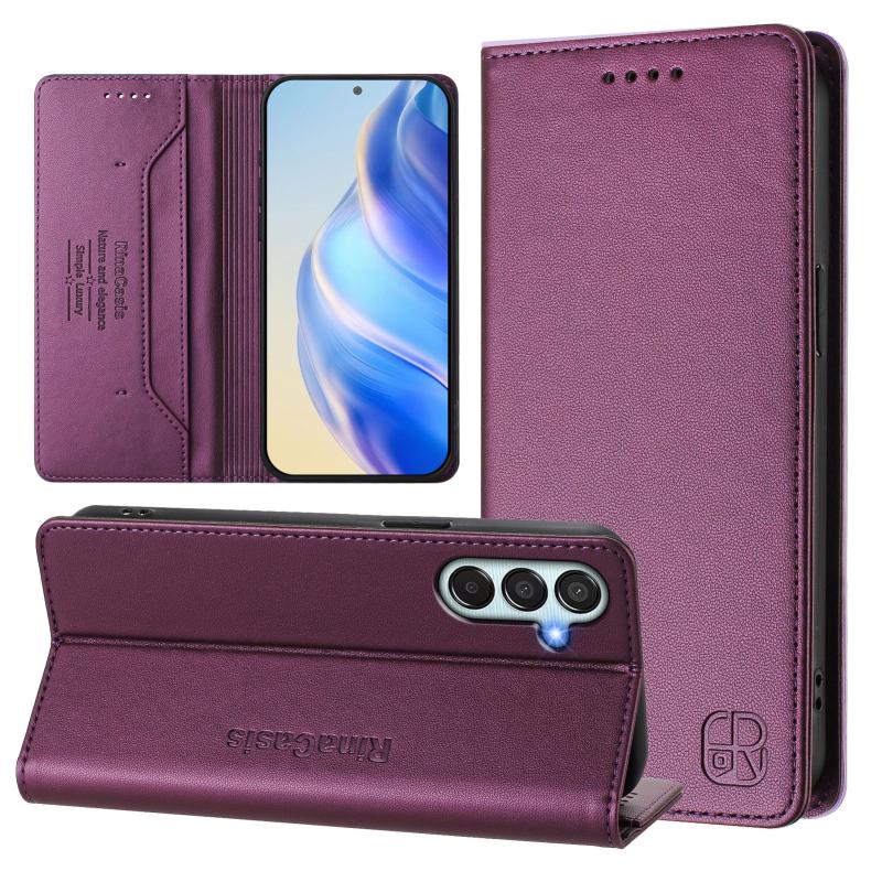 Θήκη τηλεφώνου δέρματινη με μαγνητική απορρόφηση και διπλή πτύχωση για Samsung Galaxy M34 5G / F34 5G RC01 (Βιολετί)