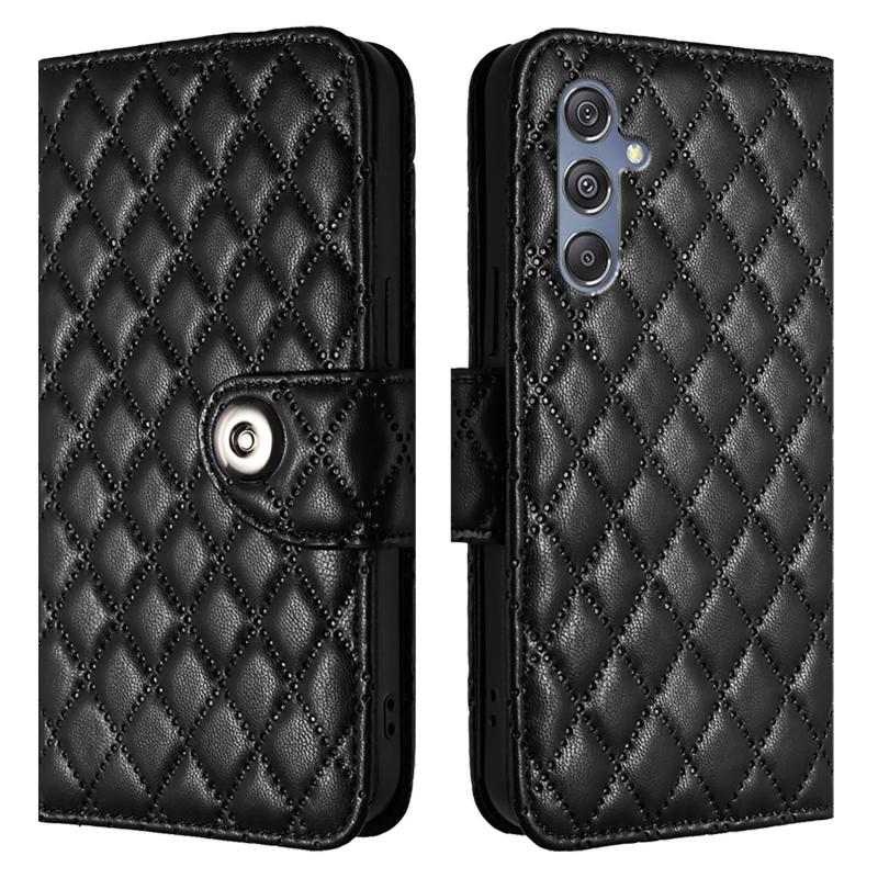 For Samsung Galaxy M34 5G / F34 5G Rhombic Texture Flip Leather Phone Case with Lanyard(Black)