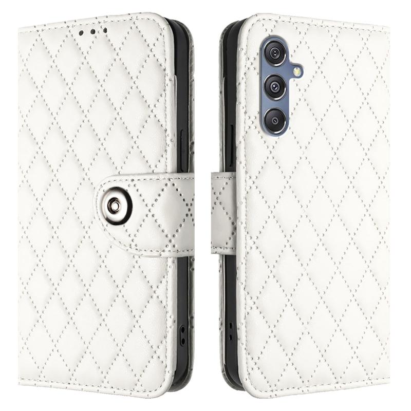 For Samsung Galaxy M34 5G / F34 5G Rhombic Texture Flip Leather Phone Case with Lanyard(White)