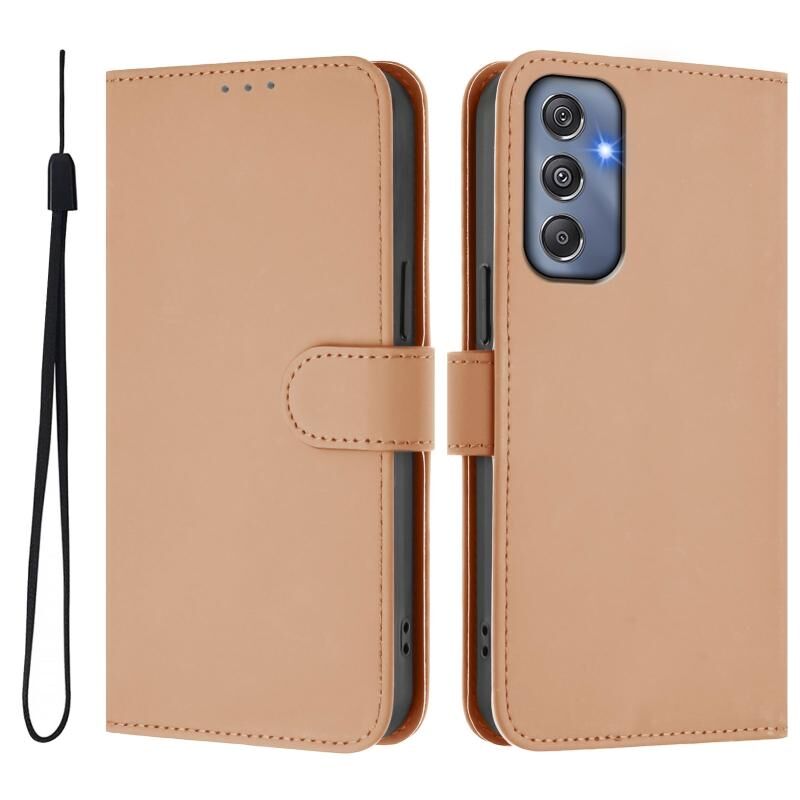 Για το Samsung Galaxy M34 5G / F34 5G δέρμα αίσθηση στερεό χρώμα δερμάτινη θήκη τηλεφώνου με κορδόνι (Nude)