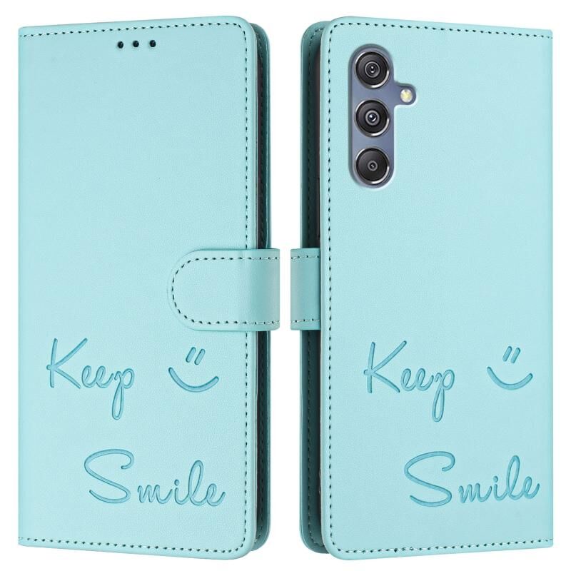 For Samsung Galaxy M34 5G / F34 5G Smile Embossing RFID Leather Phone Case(Mint Green)