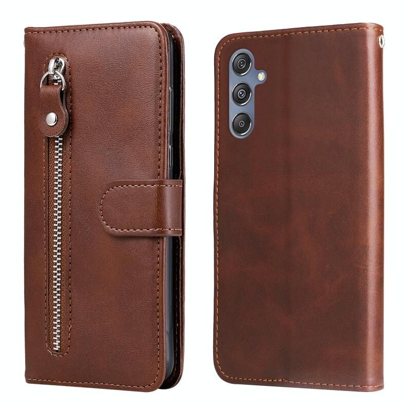 For Samsung Galaxy M34 5G Fashion Calf Texture Zipper Leather Phone Case(Καφέ)
