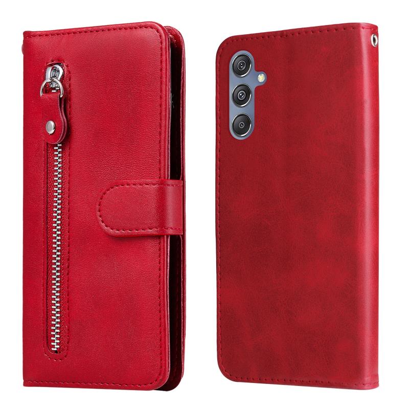 For Samsung Galaxy M34 5G Fashion Calf Texture Zipper Leather Phone Case(Κόκκινο)