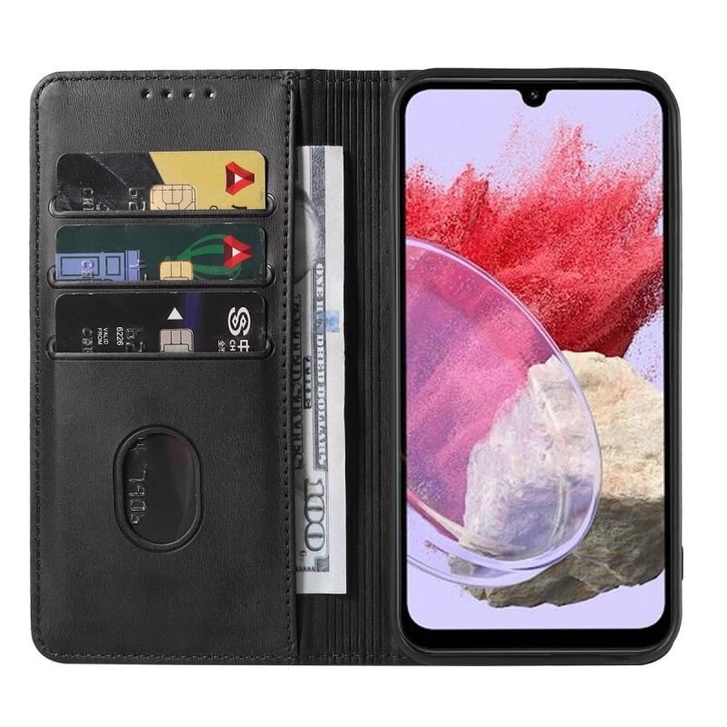 Για Samsung Galaxy M34 5G Μαγνητικό κλείσιμο δερμάτινη θήκη τηλεφώνου(Μαύρο)