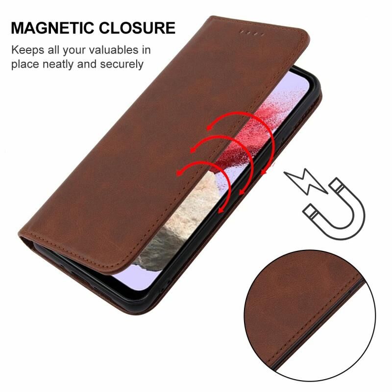 Για Samsung Galaxy M34 5G Μαγνητικό κλείσιμο δερμάτινη θήκη τηλεφώνου (καφέ)