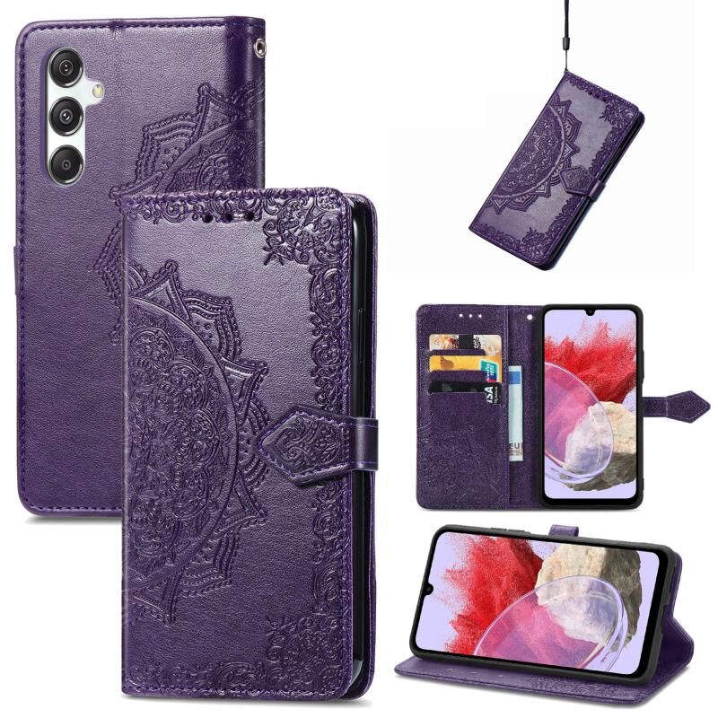 Για Samsung Galaxy M34 5G Mandala λουλούδι ανάγλυφο δερμάτινη θήκη τηλεφώνου (μωβ)
