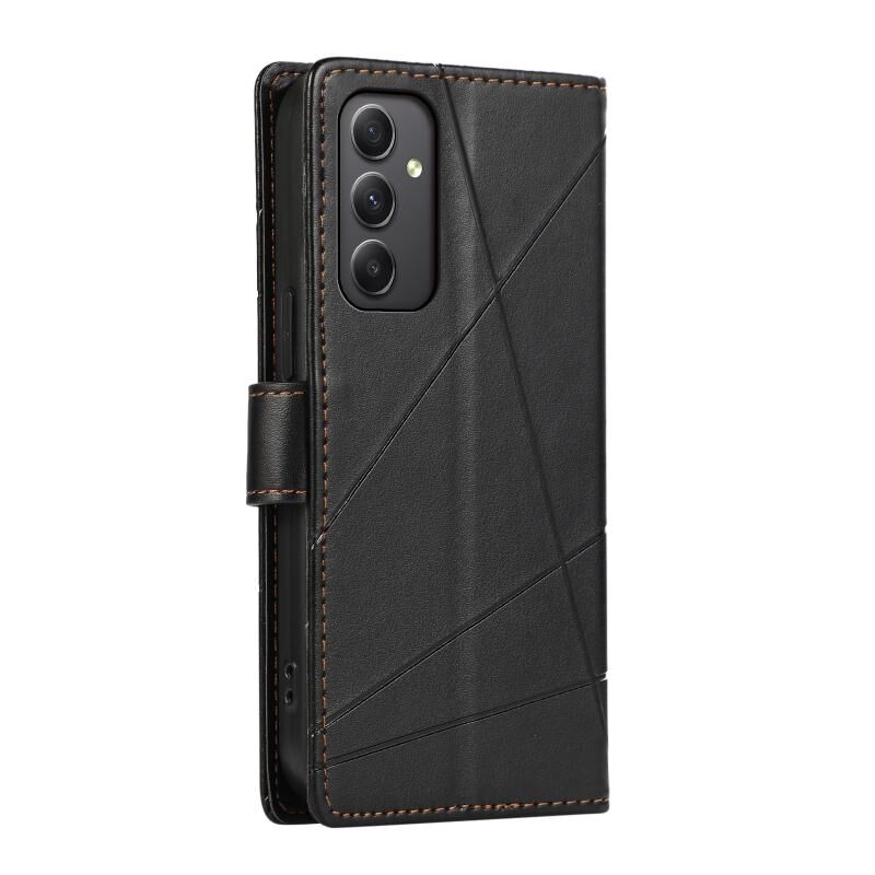 Θήκη τηλεφώνου για Samsung Galaxy M34 5G από γνήσιο δέρμα PU με ανάγλυφη υφή και λεπτομέρειες γραμμής (Μαύρο)