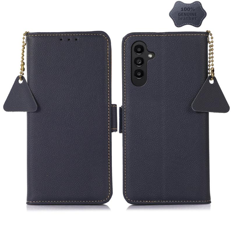 For Samsung Galaxy M34 5G Side-Magnetic TJ Genuine Leather RFID Phone Case(Blue)