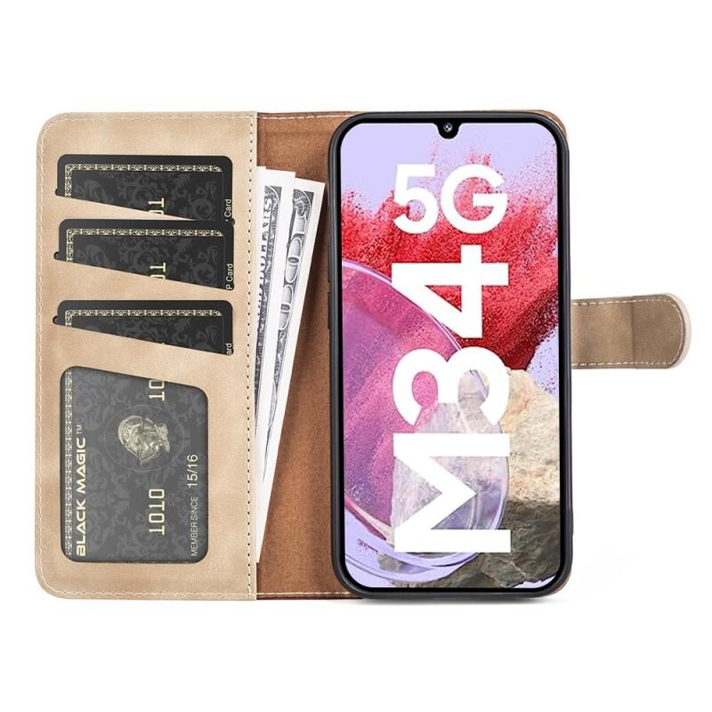 Για το Samsung Galaxy M34 5G ραφή οριζόντια Flip δερμάτινη θήκη τηλεφώνου (κίτρινο)