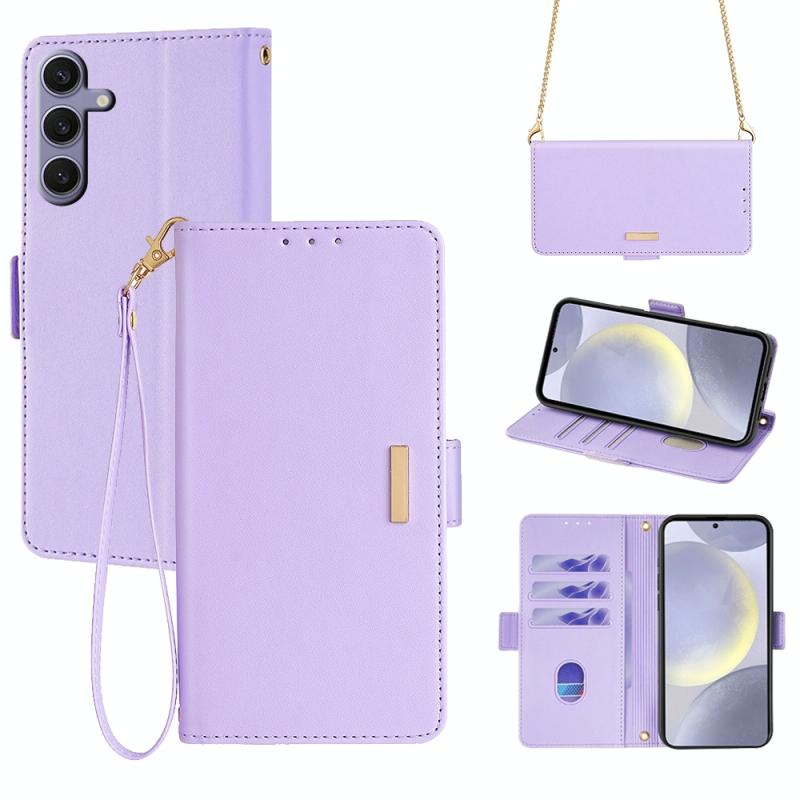 For Samsung Galaxy M34/F34 5G Crossbody Chain Leather Phone Case(Purple)