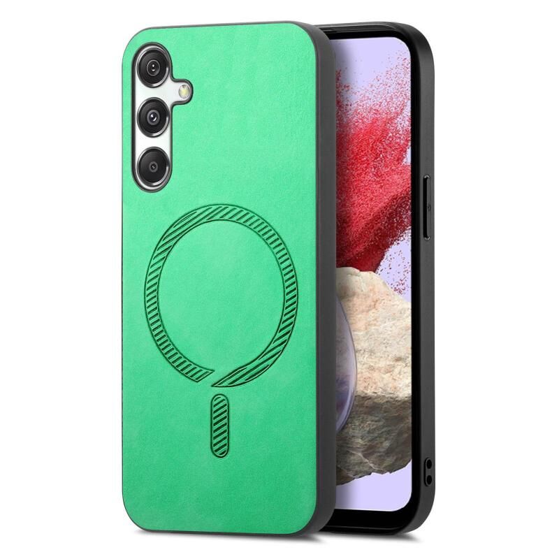 Θήκη κινητού τηλεφώνου με μαγνητική σύνδεση (Magsafe) από PU δέρμα, μονόχρωμη, ρετρό, για Samsung Galaxy M34 / F34 5G (πράσινο)
