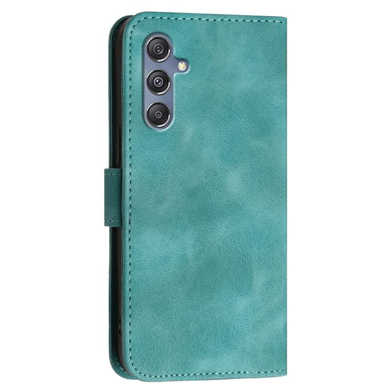 Θήκη τηλεφώνου Samsung Galaxy M34 YX0080 από δέρμα με σχέδιο πεταλούδας σε πλέγμα και λουρί (Σκούρο Μπλε)
