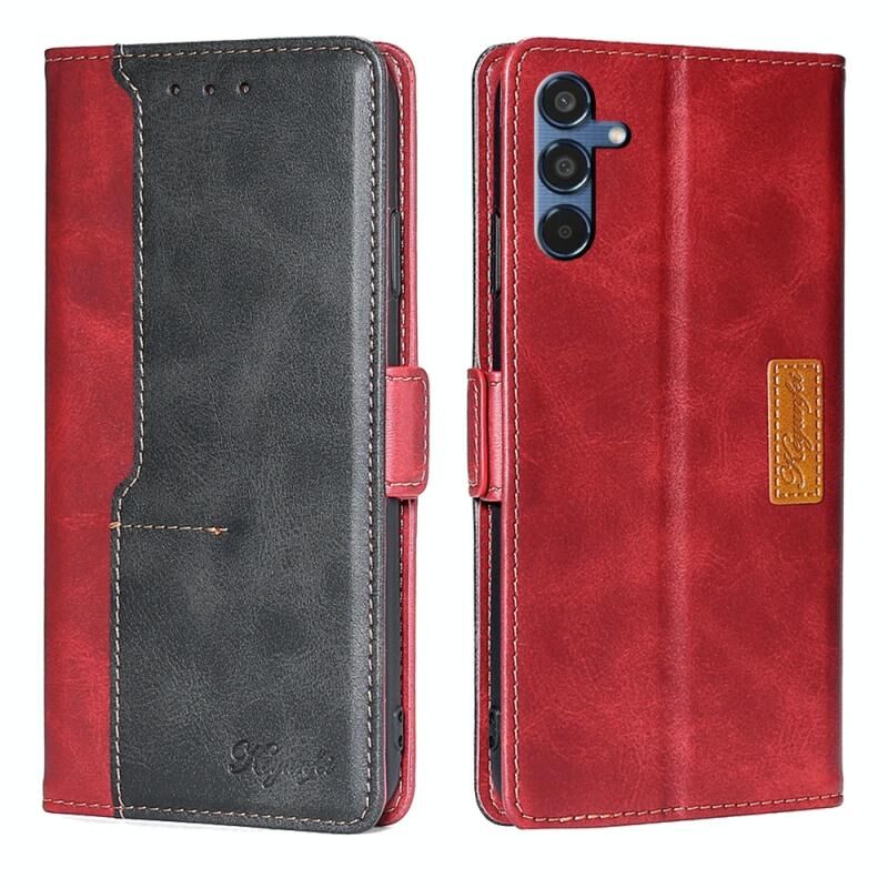 Για Samsung Galaxy M35 5G αντίθεση χρώμα πλευρά πόρπη δερμάτινη θήκη τηλεφώνου (κόκκινο + μαύρο)
