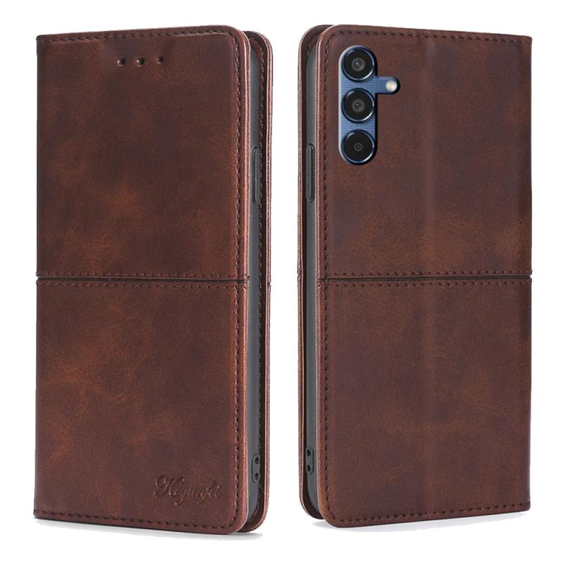For Samsung Galaxy M35 5G Cow Texture Magnetic Leather Phone Case(Dark Brown)