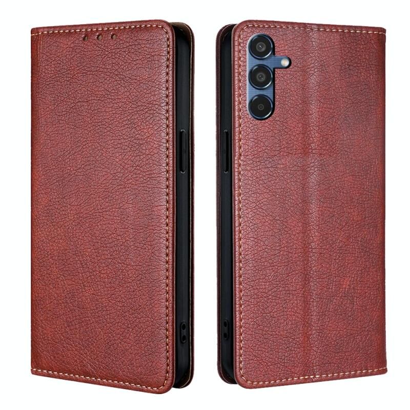 Για Samsung Galaxy M35 5G Gloss Oil Solid Color Μαγνητική δερμάτινη θήκη τηλεφώνου (καφέ)