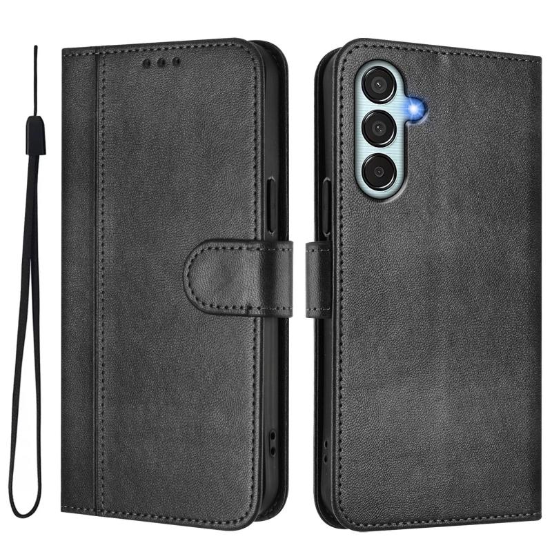 For Samsung Galaxy M35 5G Line Splicing Buckle Retro Leather Phone Case(Black)