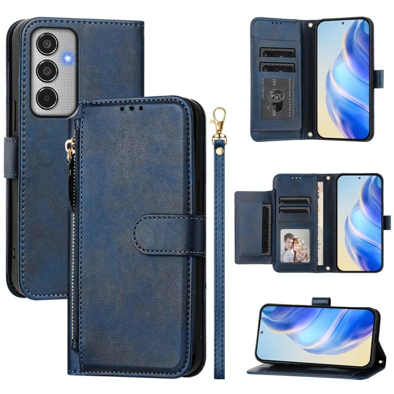 For Samsung Galaxy M35 5G Multi-Card Slots Zipper Wallet Leather Phone Case(Blue)